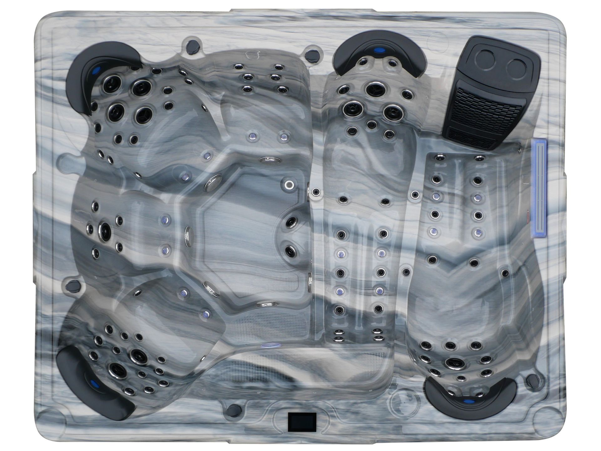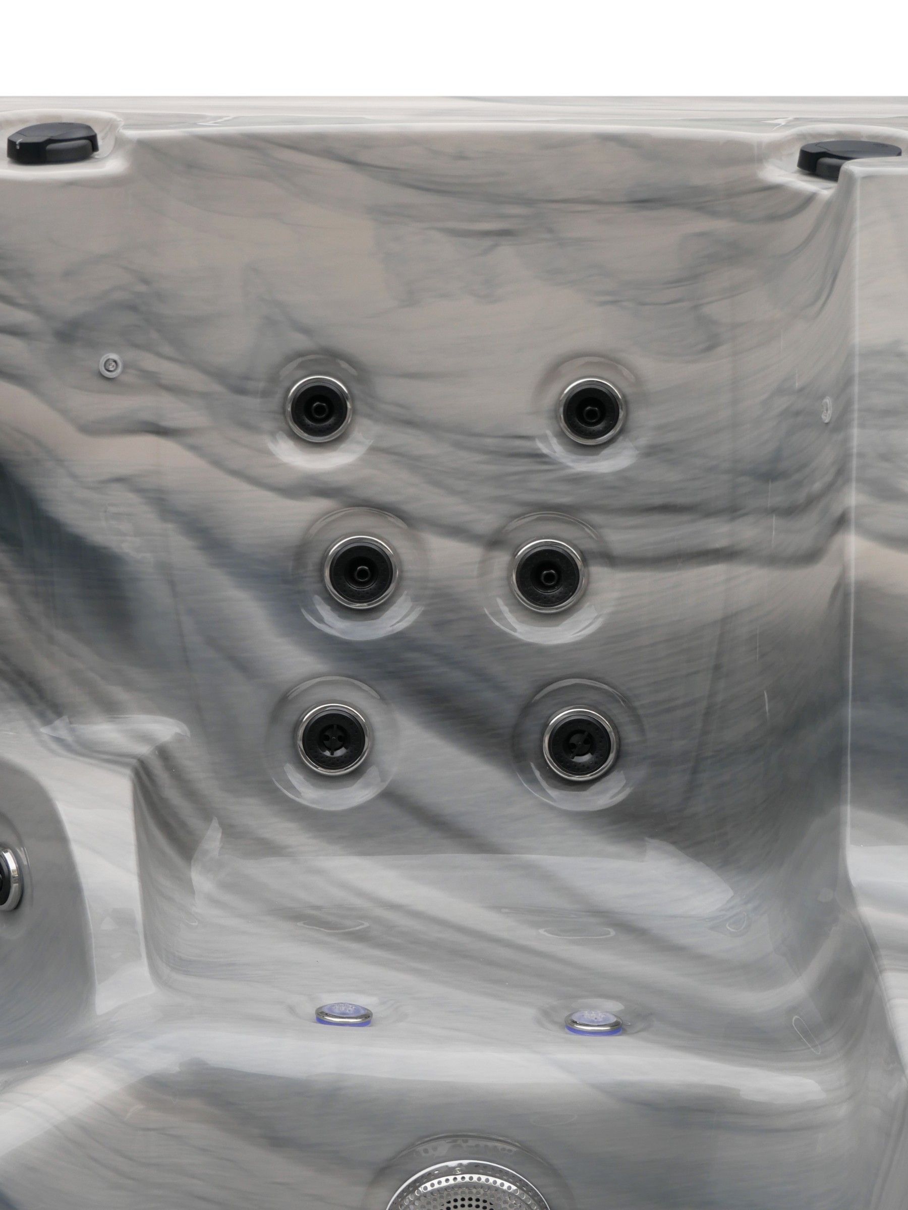 The hot tub series - VILADA series offers you totally 97 massage jets and 16 Bubble nozzles. The hydrotherapy massage come in various 6 sizes jet nozzles. You can get massage all over your body from your neck, hands, back area down to your legs, thigh, calft and feet. Massage system benefits to relieve tension and tired muscles.
