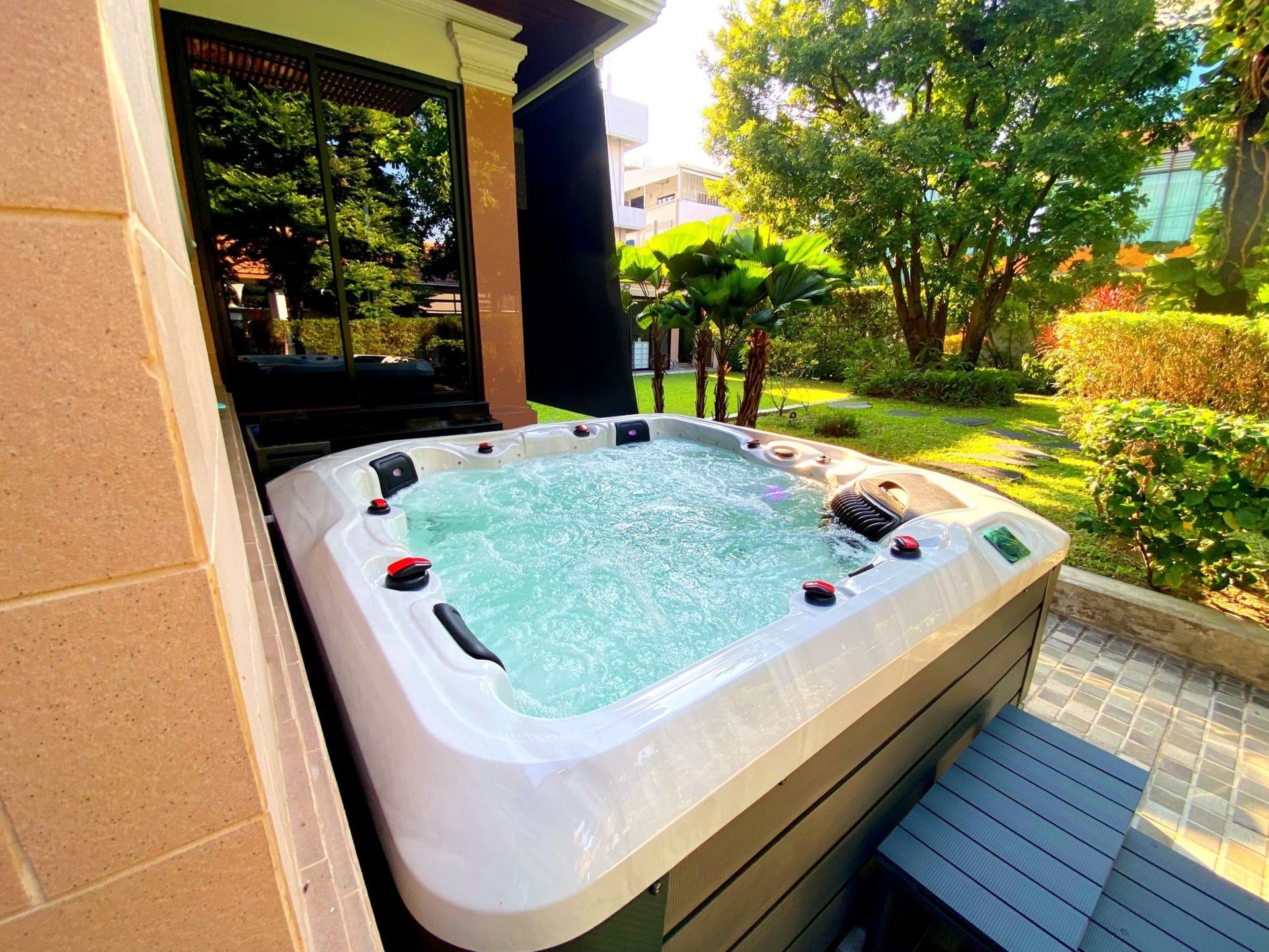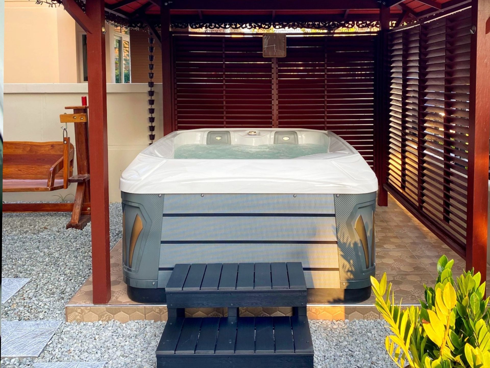 - เพิ่มความน่าอยู่ให้บ้านของคุณ – อ่างน้ำร้อนเป็นอีกสิ่งอำนวยความสะดวก ช่วยเปลี่ยนพื้นที่กลางแจ้งให้กลายเป็นสปาส่วนตัว