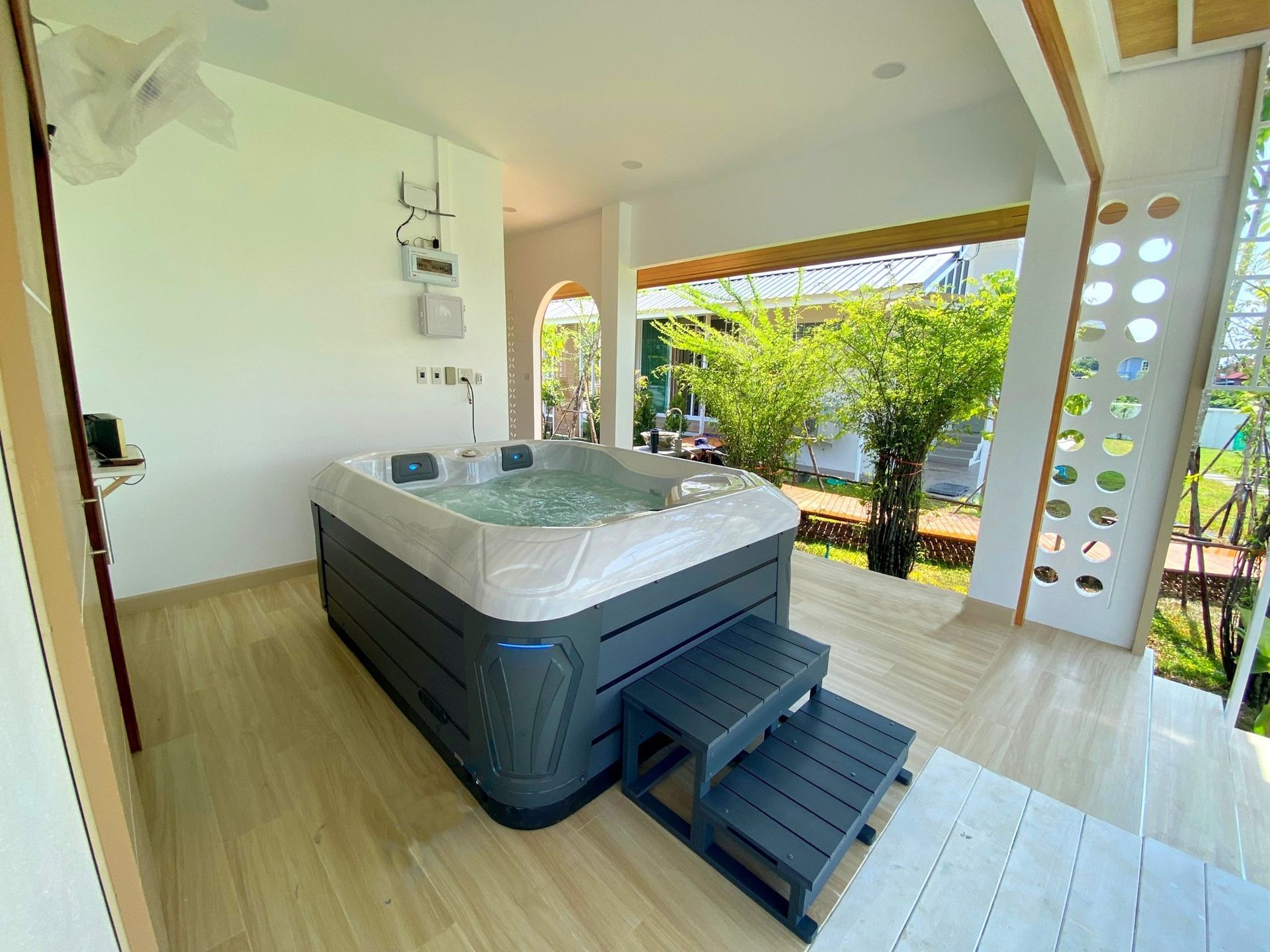 เมื่อคุณเหนื่อยล้าและเคร่งเครียดมาตลอดทั้งวัน การได้ลงแช่น้ำอุ่นในอ่างน้ำร้อน ใต้ท้องฟ้าอันเปิดกว้างพร้อมรับสายลมและบรรยากาศภายนอกบ้าน คือ อีกหนึ่งวิธีผ่อนคลายแบบส่วนตัว หรือ จะแบ่งปันความสุขสุดพิเศษ ร่วมกับสมาชิกภายในครอบครัว โดยไม่ต้องออกเดินทางไปนอกบ้านได้ทุกวัน