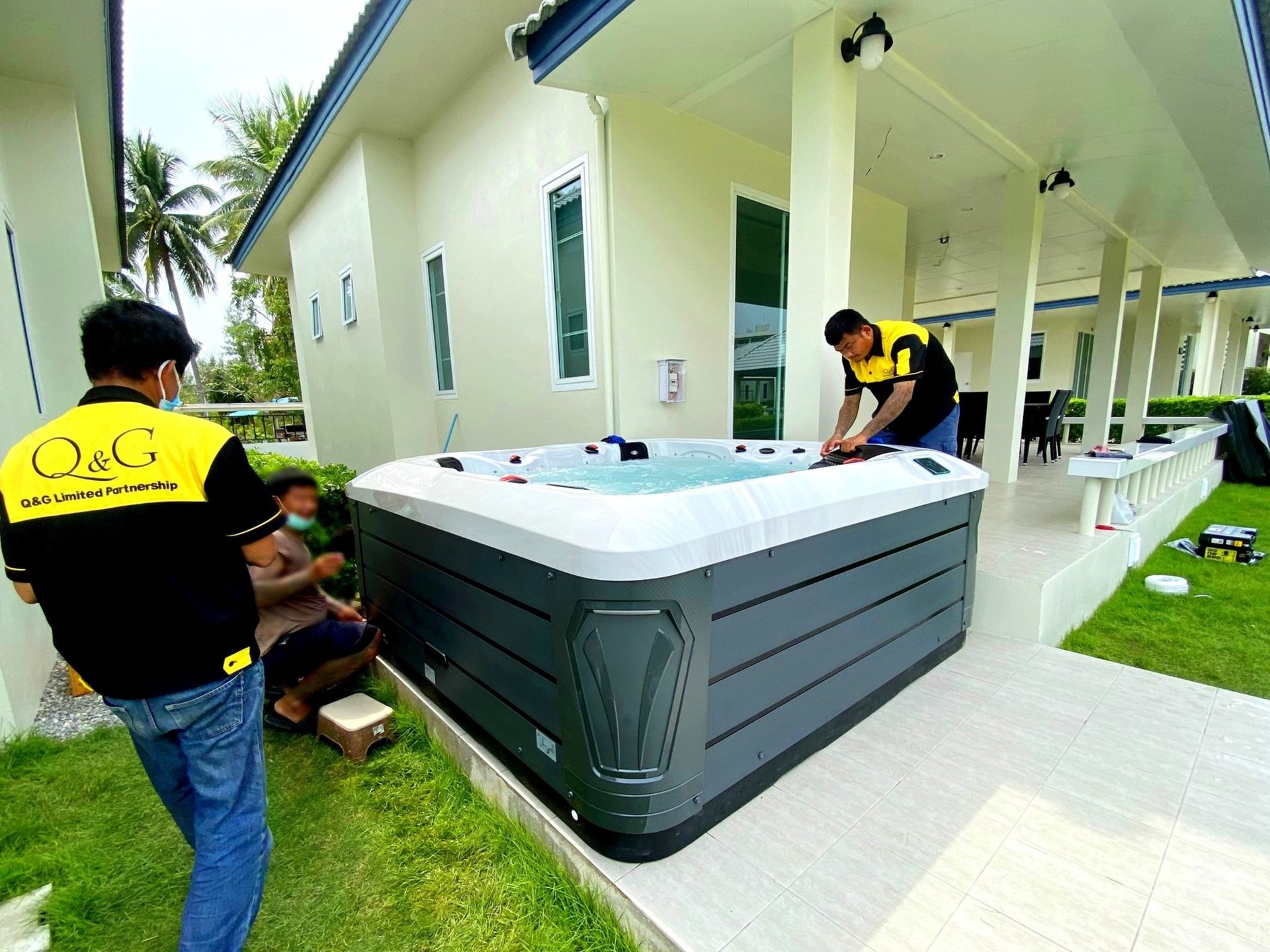 นอกจากนี้ เรายังมีบริการเดินระบบสายไฟและเชื่อมต่อไฟฟ้า จากตู้เมนของบ้านคุณไปถึงอ่างน้ำร้อน รวมไปถึงงานระบบท่อน้ำ สำหรับการถ่ายน้ำทิ้งและเติมน้ำเข้าอ่าง หลังการติดตั้งอ่างน้ำร้อนเสร็จเรียบร้อยแล้ว เรายังมีบริการให้คำแนะนำหน้างานเกี่ยวกับวิธีการใช้งานอ่างน้ำร้อนและวิธีดูแลคุณภาพน้ำให้แก่ลูกค้าอีกด้วย นอกจากนี้ คิวแอนด์จียังมีบริการหลังการขาย เพื่อดูแลซ่อมแซม แก้ไขปัญหา และ เพื่อตอบโจทย์การใช้งานในระยะยาว แม้ว่าสินค้าจะหมดอายุรับประกันไปแล้ว ทางคิวแอนด์จีก็พร้อมที่จะให้บริการแก่ลูกค้า โดยมีอะไหล่หลักสำคัญสต็อกจัดเก็บไว้รองรับ