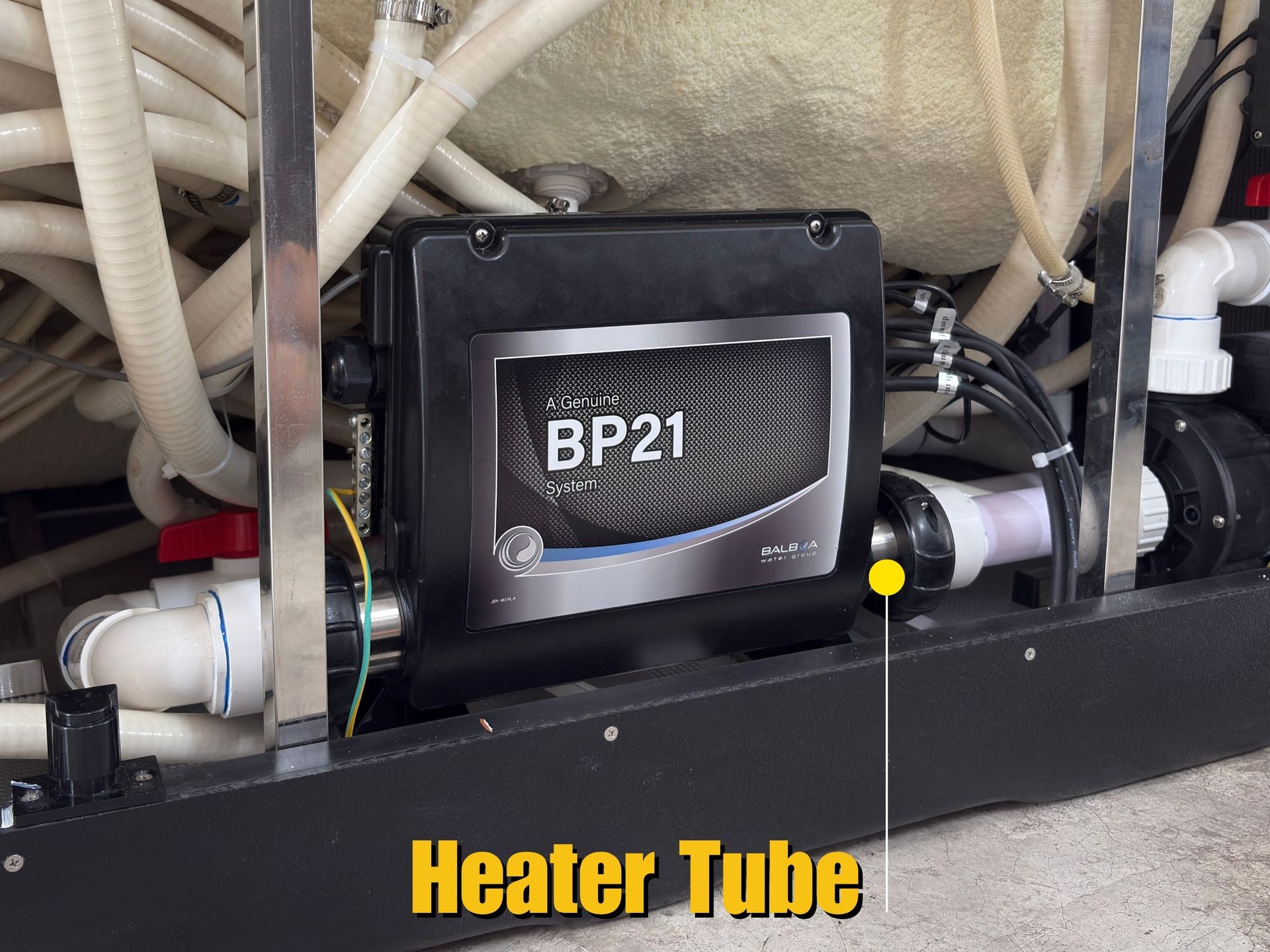 The heater tube is the stainless-steel cylinder where the water is heated.