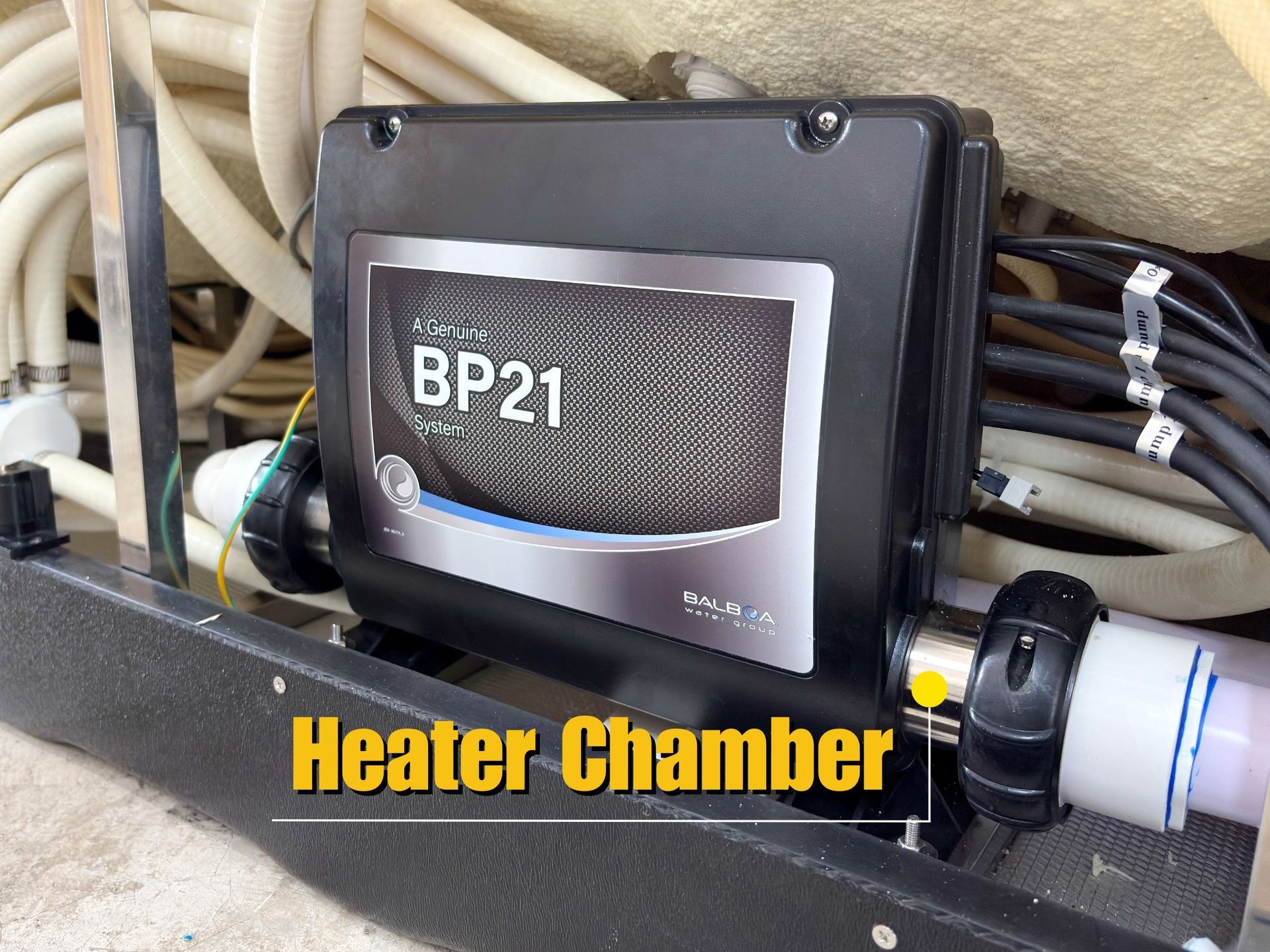 - The circulation pump draws water through the heater chamber, warms it, and returns it to the tub in a continuous loop until the set temperature is reached.